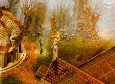 Шипы. Даже копыта Гримволда здесь не пройдут. Так, у кого тут у нас каменные тапочки? Верно, у Олмека! Идем на огород, где все еще водят хоровод несчастные детишки. Пройти мимо тыкв вы и сами сумеете, я уверена! Возьмите череп, идите к надгробному камню и верните голову безутешному приведению.