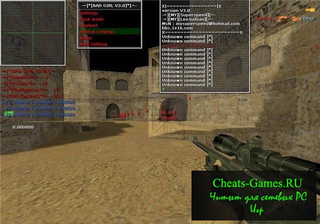 Bad Girl v3.0 многофункциональный аимбот для игры cs 1.6, работает на всех патчах не выше 55. Суть программы заключается в помощи игроку найти и обезвредить противников на сервере game Counter-Strike.