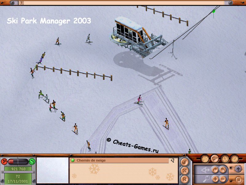 И последнее, на чем хотелось бы непременно заострить внимание на игре Ski Park Manager 2003. Похоже, опасения о неконтролируемом поумнении компьютерной техники не так безосновательны, как кажется на первый взгляд. Как-то я решил оставить игру на самотек, построив лишь минимум необходимых объектов: пару трасс, коттеджей, магазин, забегаловку и несколько технических построек. Придя через час, ожидая лицезреть сообщение о банкротстве, самоубийстве президента компании и продаже имущества с молотка, я был несколько удивлен тем, что ничего не обанкротилось и не рухнуло. Еще через час, изучив графики, я обнаружил, что все это время посещаемость и популярность пусть медленно, но упорно ползли вверх. В задумчивости я удалился еще на пару часов, а вернувшись, увидел, что популярность стабильно держится в зеленой зоне (выше среднего), деньги утроились, а к подъемникам выстроились чуть ли не километровые очереди страждущих. Поначалу их вид пробудил ностальгические воспоминания о посещении турецкого аквапарка, а потом умиление сменилось паникой.