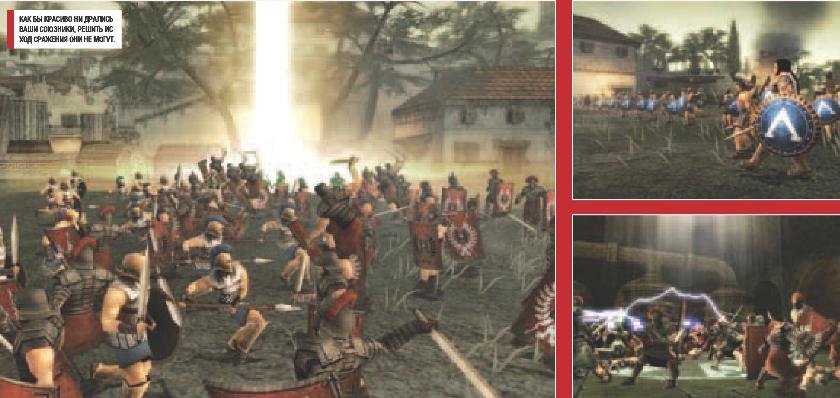 масштабного сражения. Знаете, в Dynasty Warriors на одном экране вы обычно видите от 30 до 40 персонажей, у нас их может быть 180...» Тем временем, на PlayStation 2 подгру-зился тот же уровень, что и показывался на основном стенде. Орды варваров атаковали римскую крепость, и одним из них был главный герой. Управляемый человеком, который знает об игре не понаслышке, он резво раскидывал врагов своими щитом и мечом, подбираясь к текущей цели - капитану вражеского отряда, прикрывающего стратегически важный пункт. Как только он пал, наши союзники атаковали его позиции и отбросили противника назад. Нам же было выдано новое задание. Это и есть основной принцип игры: сражение идет своим чередом, но несколько ключевых ударов, нанесенных вашим персонажем, позволят всей армии победить. Позаимствована идея, конечно же, из Dynasty Warriors, но стоит ли на это обижаться?