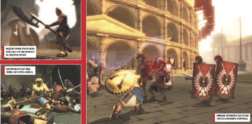 По ходу демонстрации не раз и не два разработчики упомянули невероятную мощь игрового движка и заявили, что на платформах текущего поколения ничего подобного мы не видели и не увидим. Действительно, Dynasty Warriors и Drakengard ни в какое сравнение не идут с Spartan: Total Warrior. God of War симпатичнее, но там попросту нет такого количества бойцов на одном экране одновременно. «Будет ли разница между версиями для PS2 и Xbox?» - привычно поинтересовался я. Ян ответил: «На Xbox мы используем текстуры более высокого разрешения. Разницу можно заметить в основном на HDTV. В остальном графика та же - модели, количество врагов на одном экране, эффекты. Это лишний раз показывает, какой мощный движок мы подготовили для игры. А версию для Xbox... мы сейчас тоже продемонстрируем». Из-под стола была извлечена тестовая версия консоли. «Вот тут у нас последний уровень, он отлично демонстрирует возможности движка. Это Колизей. Здесь вы встретитесь в бою лично с римским императором. Да, кстати, на каждом уровне мы подготовили битву с боссом. Обычно это какое-то мифологическое существо вроде минотавра. Есть могучий лидер варваров, коварный некромант... Скучно не будет».
