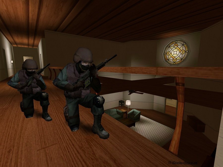 Играть мы будем за специальное подразделение ФБР Hostage Rescue Team (HRT), которое, впрочем, одним спасением , заложников не занимается. Как и положено гругше людей в темном обмундировании, в касках и с автоматами, мы внедряемся (т.е., как правило, вламываемся иод звуки стрельбы и взрывающихся гранат) на территорию врага, конфискуем: кейсы с документами, копируем на диски информацию с компьютеров, забираем ничего не понимающих .заложников с собой, устраняем шефа бандитов и закладываем бомбу (на всякий случай). И. конечно же, отстреливаем кучу народа с неизменными “Калашниковыми", прибегающую узнать, кто же тут так шумит.