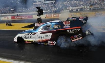 Управление в DR не то чтобы очень радует... Во-первых, налицо особые моменты управления драгстером: джойстик по горизонтали надо перемещать, скажем так, легкими движениями. Настолько легкими, что в процессе вождения удивлялся чувствительности прибора — отклонил-то на долю миллиметра... Ошибки обходятся дорого: даже на самом легком уровне драгстер является довольно неустойчивой машиной. Касание ограждения — зто почти наверняка потеря колес, что означает, во-первых, проигрыш, а во-вто-рых, лишние финансовые затраты в игре NHRA .