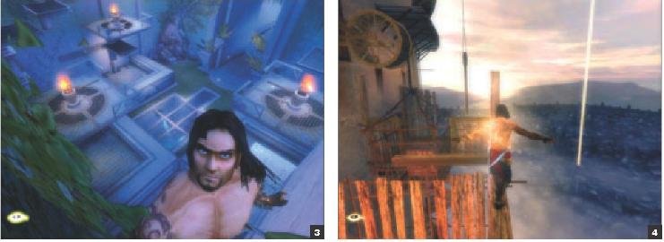 POP3 можно глотать по привычке, перебивая акробатические динамиады грязной, словно хорошая свалка в баре, потасовкой. Тем не менее альтернатива не обделенной очаровательным хаосом поножовщине теперь закодирована в генетическом дизайне уровней: птичий насест, еле заметный выступ в стене, скальная трещина, одинокий обломок колонны на отшибе — маленькие приметы приватного торжества таксидермиста. Всплеск-другой моз-говеществом, связка каверзных пируэтов в безоблачно искристом небе — и Принц на позиции. Приглашением считается вид на открытую всем ветрам спину песочного голема. Сверху коршуном падает комок мускулов и стали; камера, позабыв все шестнадцать миллионов оттенков, в волнении сигает следом и, широко раскрыв цейсов-ский окуляр, восторженно наблюдает, как в неровном ч/б взлетает и опускается страшный ломаный клинок.